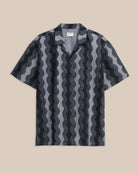 This version updates the classic with a camp collar and a wavy, water-inspired indigo print. The result blends workwear heritage with a relaxed, coastal feel, balancing durability with a modern aesthetic.